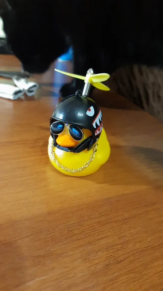 Информация о посылка1 шт. желтая утка1 шт. х шлем1 шт. x Airscrew1 шт. x Солнцезащитные очки1 шт. x цепьНаклейка-1 шт.