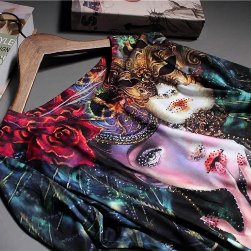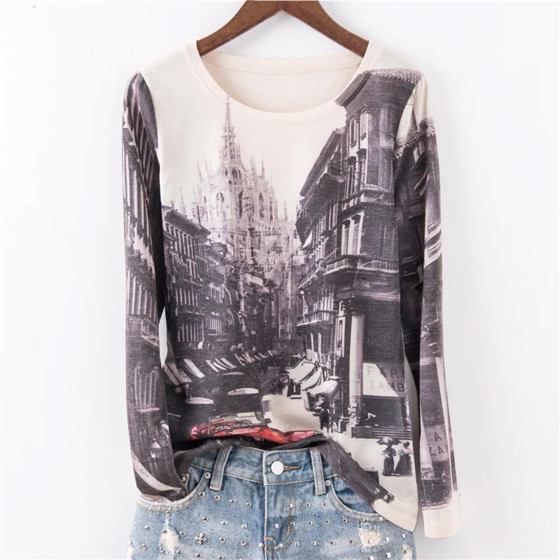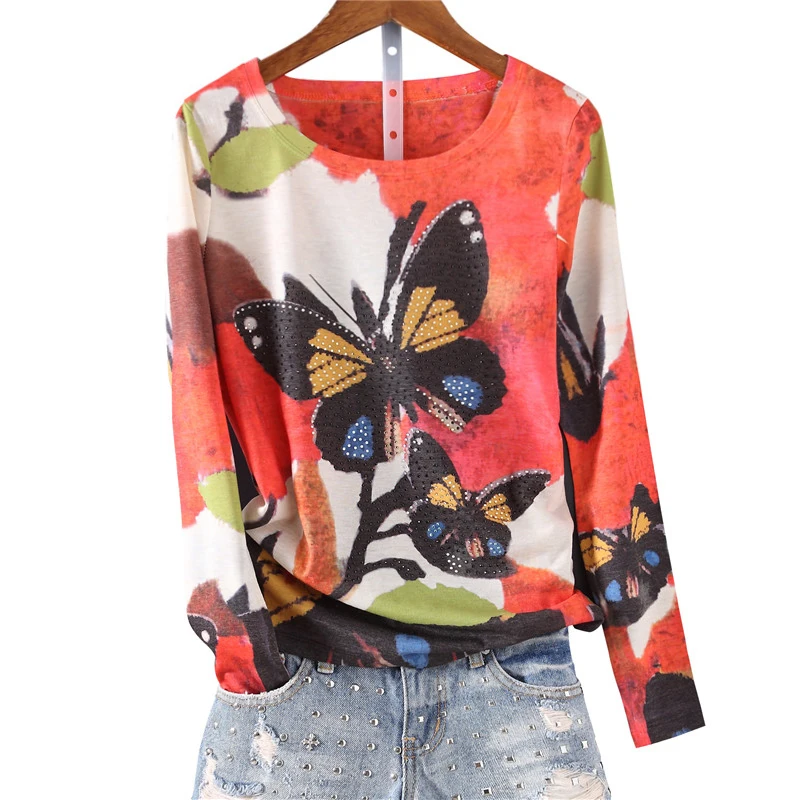 Футболка женская оверсайз в стиле Харадзюку, Винтажная футболка с абстрактным рисунком, длинным рукавом, бисером, AA166S30, 3XL4XL, 2020