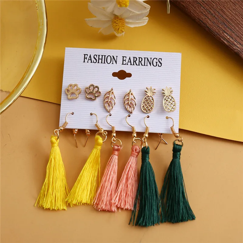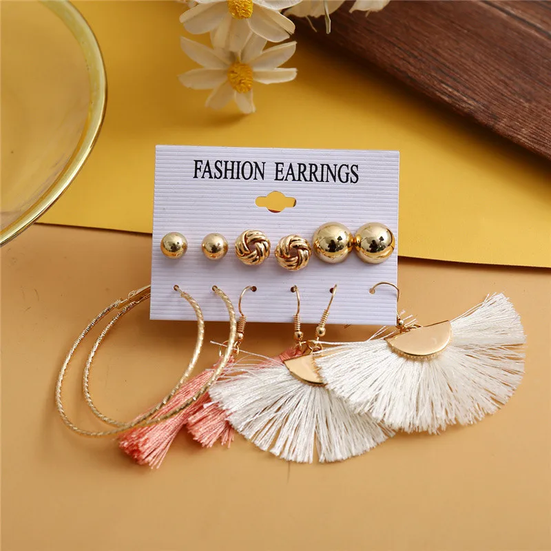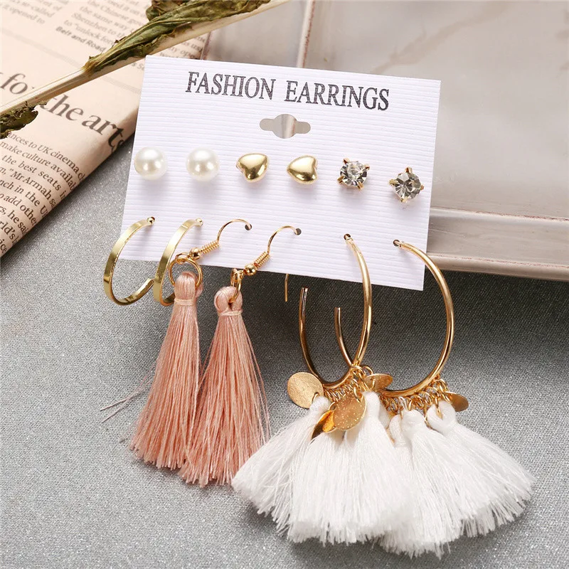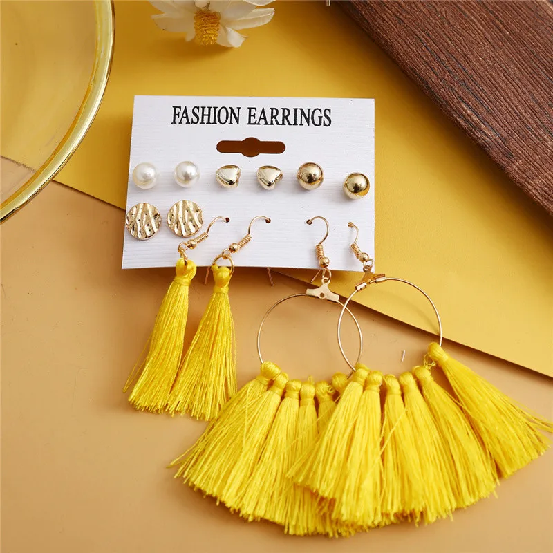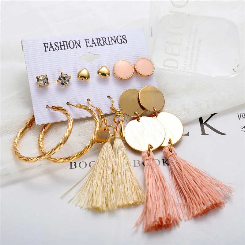 Длинные серьги с кисточками для женщин и девочек, 2019, богемные серьги, набор, цветок, сердце, круг, геометрические акриловые массивные серьги, ювелирные изделия