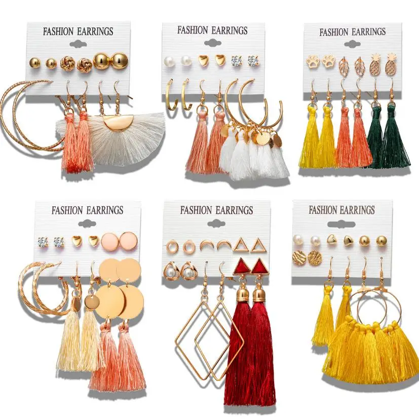 Серьги с длинными кисточками для женщин и девочек, набор серег в богемном стиле, цветочные, сердца, круглые, геометрические акриловые массивные серьги, ювелирные изделия, 2019