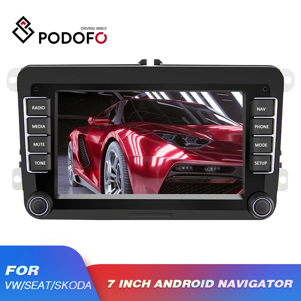 Автомагнитола Podofo, 2 Din, Android 8,1, 7 дюймов, GPS, для SeatSkodaPassatGolfPolo