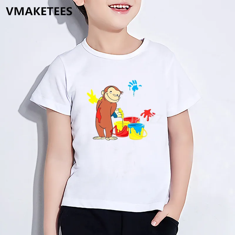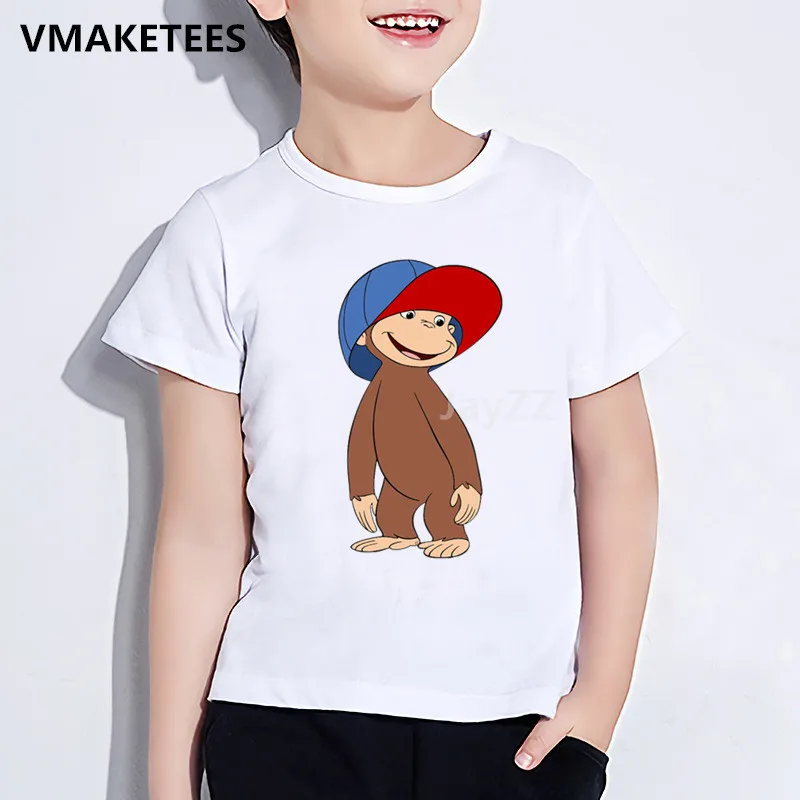 Детская футболка с любопытным изображением Джорджа с мультяшным принтом, Детская забавная одежда с Обезьянами в виде животных, летняя белая детская футболка для девочек и мальчиков, HKP5266