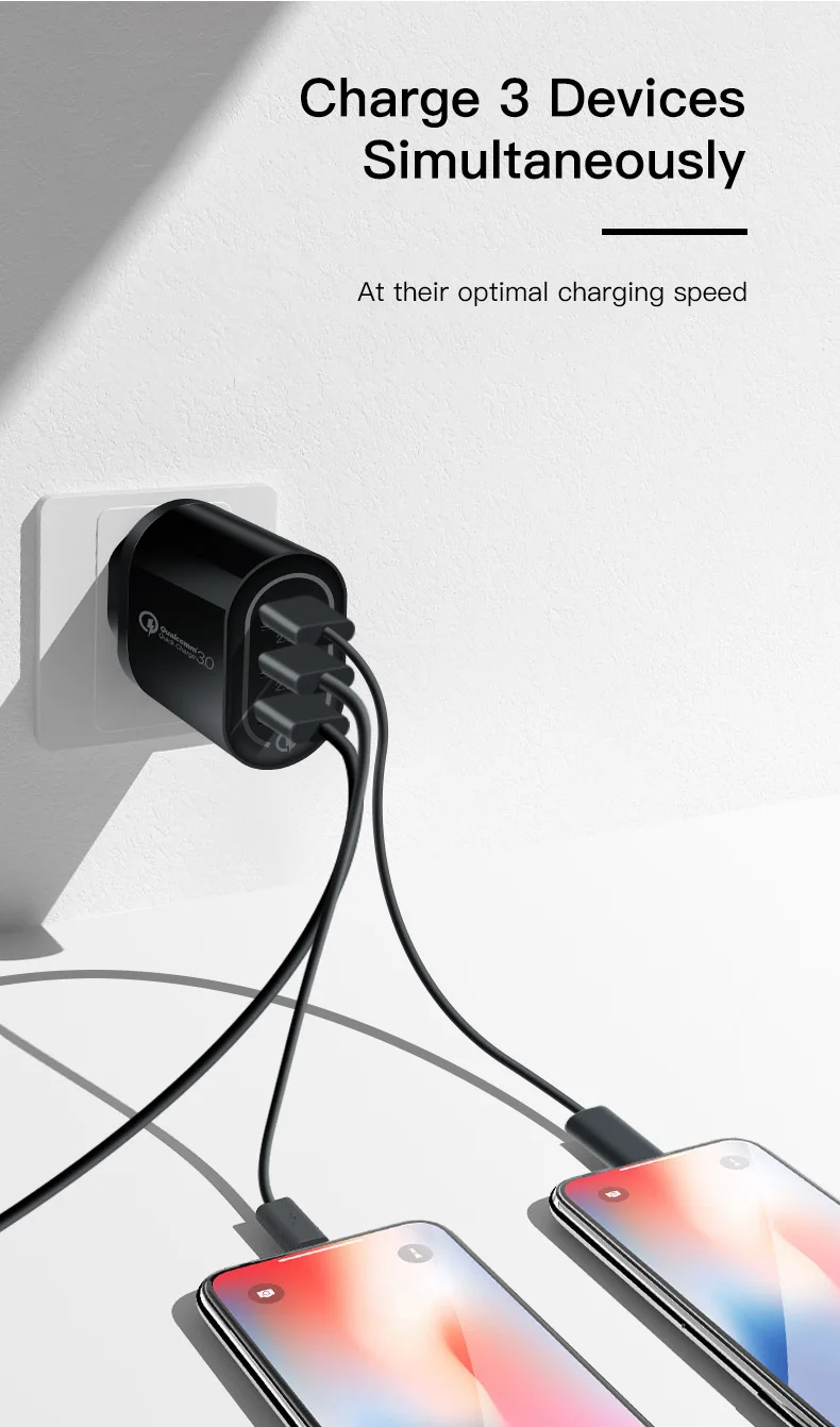 Настенное зарядное устройство с 3 Usb-портами, для iphone 6, 7, 8, X, XS, XR, Xiaomi, Huawei, Samsung, с функцией быстрой зарядки, 3,0