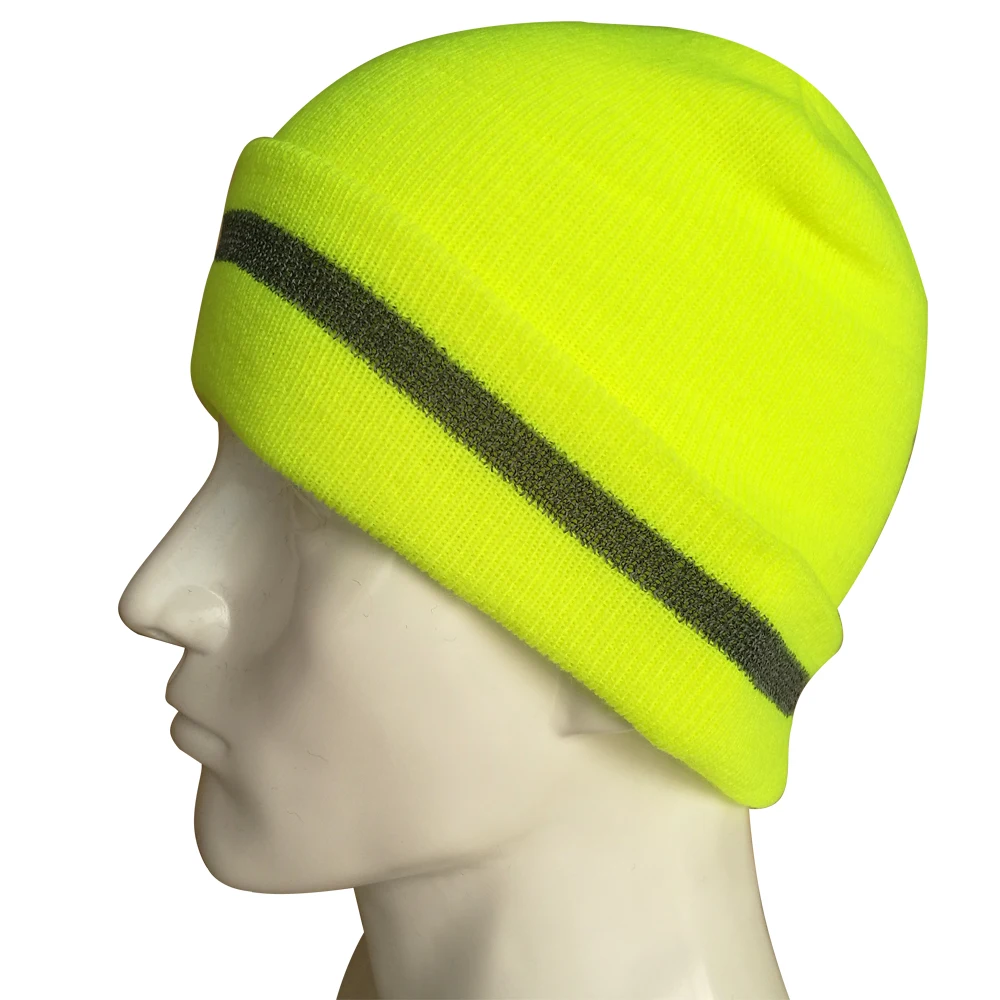 Вязаная шапка Hi-Viz со светоотражающей полосой для мужчин и женщин, Мужская Защитная шапка, зимняя вязаная шапка со светоотражающей полосой для холодной погоды