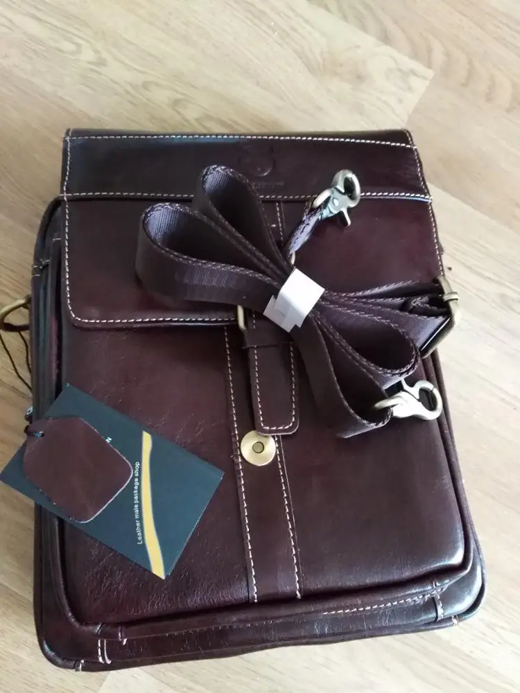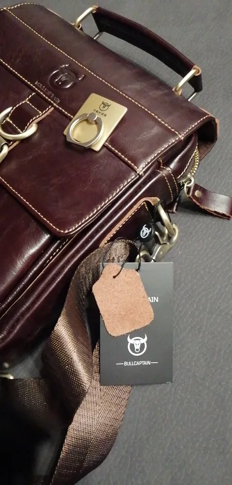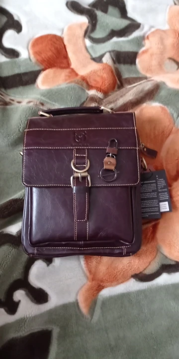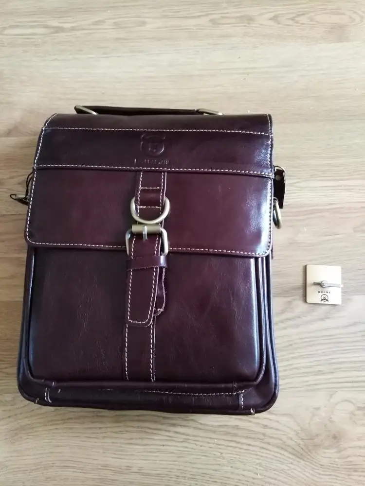 Очень вместительная сумка. Пошита хорошо, все швы ровные. Присутствует довольно сильный запах. На счет натуральности кожи имеются очень сильные сомнения, на этикетке написано , что основным материалом является коровья кожа. Вполне может быть , что на некоторых деталях она и присутствует. По внешнему виду похоже на "прессовку". Для себя сделал вывод , нельзя слепо доверятся отзывам и если хотите хорошую сумку , идите в магазин, там можно посмотреть и потрогать , правда цена будет намного выше, но зато вещь будет настоящая. А для студентов сойдет. За брелок спасибо. Думаю цена такой сумки с али , должна быть не более 1500 руб.