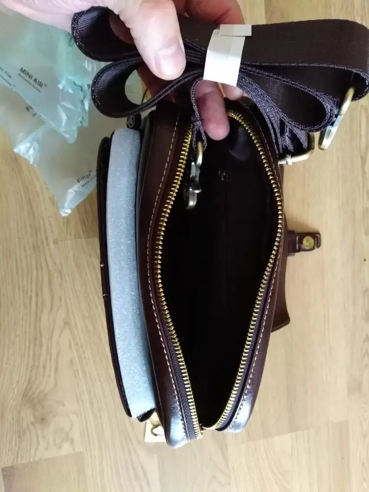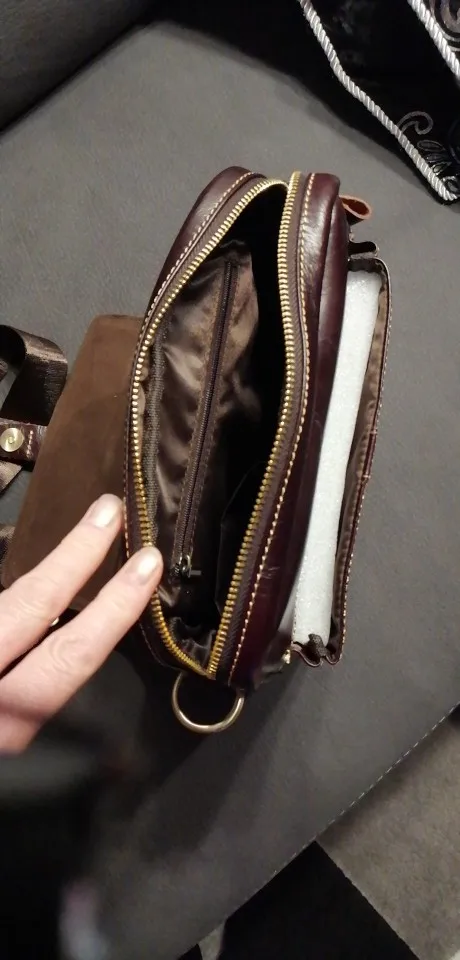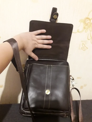 Хорошая сумка, похоже натуральная кожа. Присутствует небольшой запах, думаю быстро выветрится. Внутреннее отделение и наружный карман вместительные. Карман у бедра маловат - телефон 6 дюймов уже не влезает. Магнит кажется хлипковатым, время покажет. В подарок положили брелок для ключей. Доставка до МСК 20 дней. Продавца рекомендую!