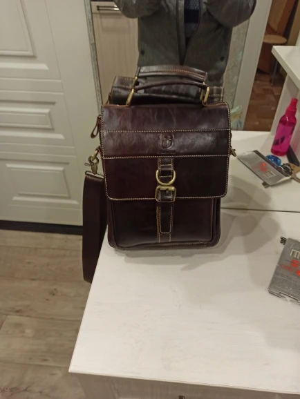 Отличная сумка, натуральная кожа. Продавец умничка, охотно идёт на контакт не только сообщениями, но и звонил по телефону. Рекомендую!