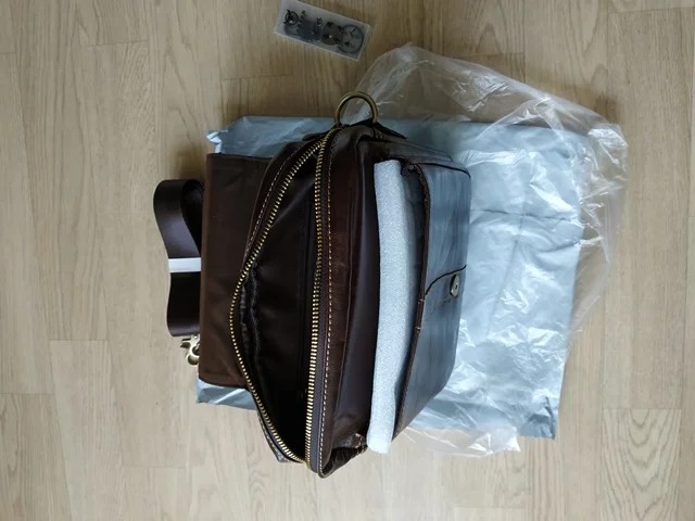 Сумка хорошего качества,кожа немного грубовата,но при этом имеет хорошую форму.Молния отлично работает,основное отделение вместительное.Имеет не значительный запах.В дальнейшем опишу отзыв.Доставили в Харьков за 16 дней.