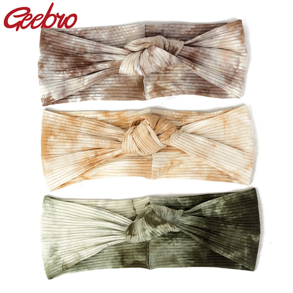 Geebro Женский Повседневный хлопковый галстук окрашенные ребристые повязки для волос женские мягкие узкие повязки для волос для взрослых молодых девушек
