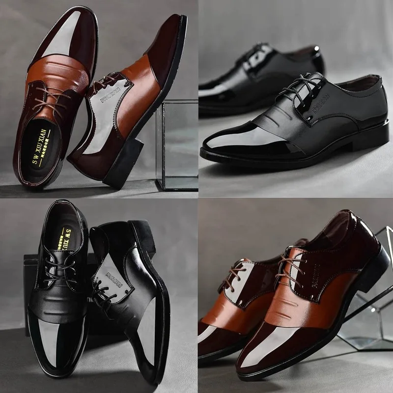 Туфли мужские из лакированной кожи, классические, черные, коричневы...