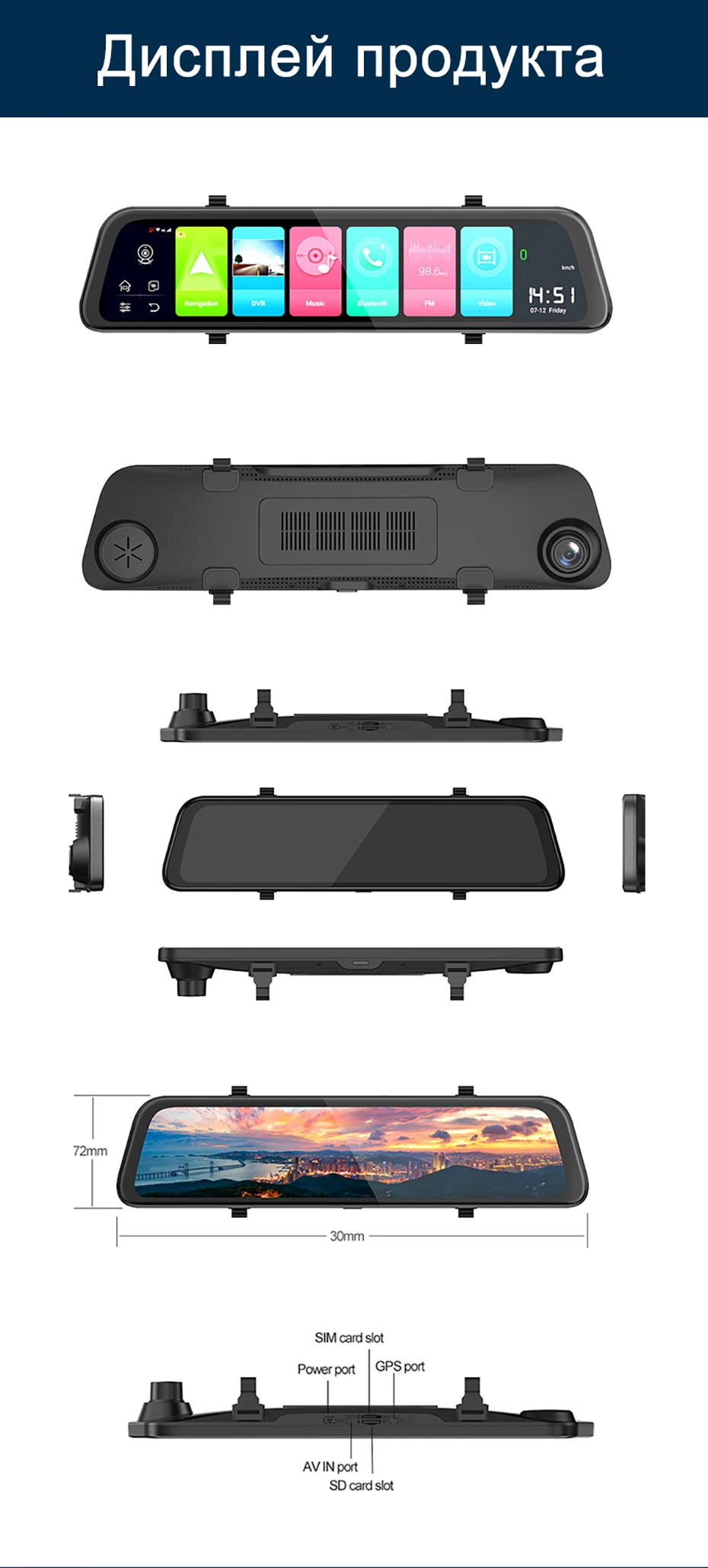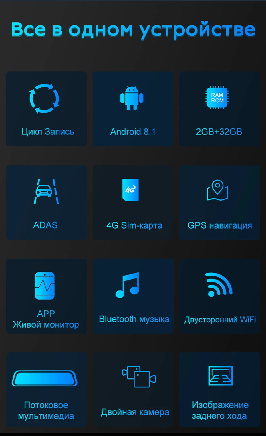 > 12,0-дюймовый ультра большой ясный сенсорный Панель > 4G/3G интернет/Серфинг быстрее > Gps-навигация-мы установим для вас внедорожные карты. > Запись двойной камеры одновременно > Удаленный монитор в режиме реального времени > ADAS Plus делает вождение более безопасным (только версия 4G поддерживает, версия 3G не поддерживает эту функцию) > Функция громкой связи Bluetooth > Fm-передатчик, синхронизация с вашим автомобильным динамиком > Поддерживает Язык ОС Английский, русский, испанский, тайский, арабский, итальянский, японский, корейский, шведский, французский, немецкий, иврит, турецкий, португальский, русский, польский, словацкий, чешский, голландский, словенский > Стандартная Упаковка включает: 1 x Видеорегистраторы для автомобилей 1 х Автомобильная камера заднего вида 1 x GPS антенна -1 шт. зарядное устройство для автомобиля-Зарядное устройство