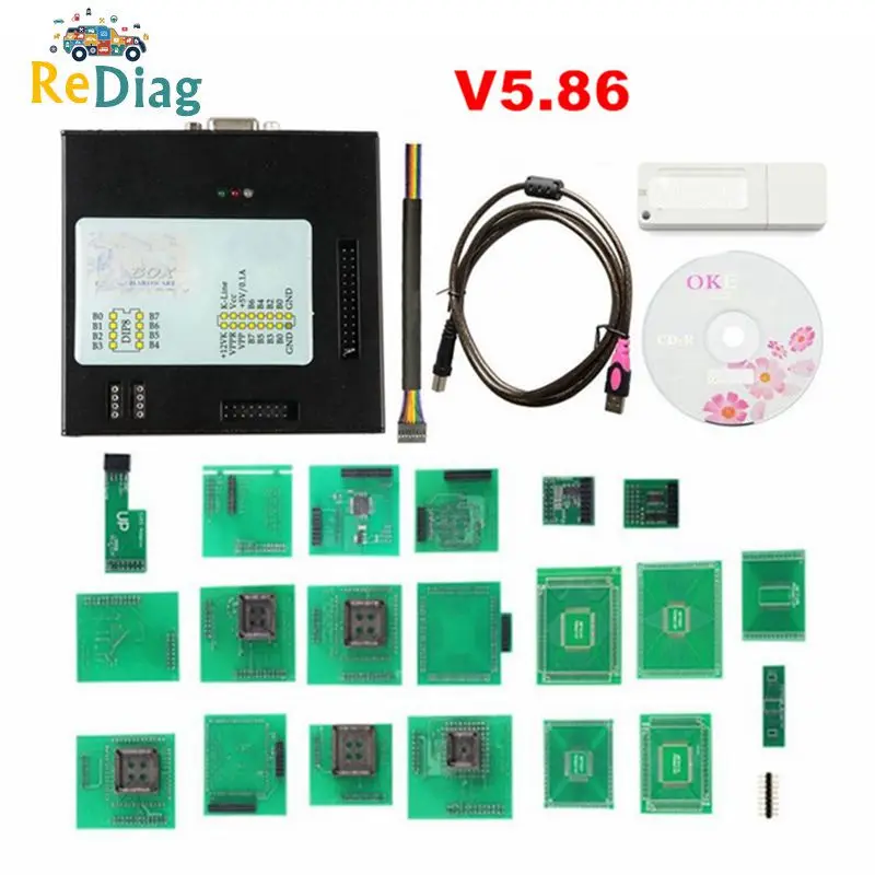 1 шт. x XPROG-Box Hardware (алюминиевый корпус)Набор адаптеров 19 шт.1 шт. х USB кабель1 шт. x 16Pin кабель1 шт. x CD с программным обеспечением XPROG-Box (V6.12)