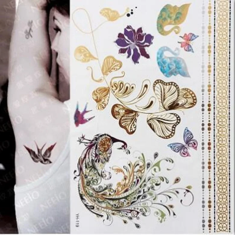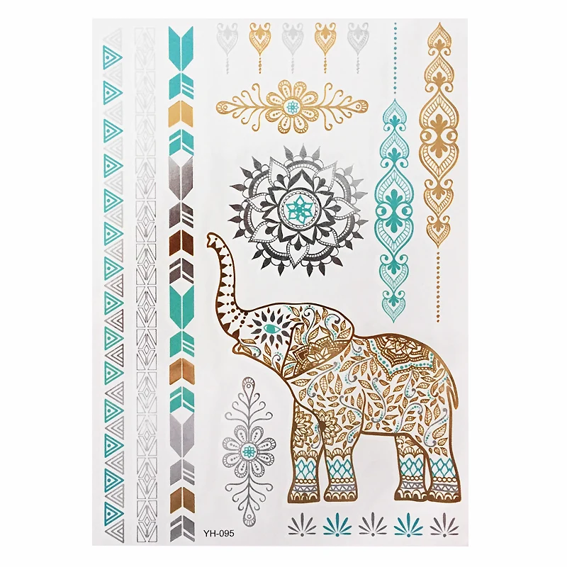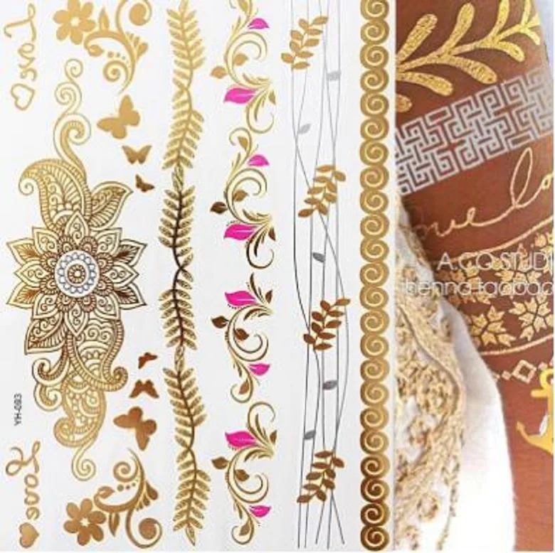 Новая Металлическая водостойкая временная татуировка Flash, золотые и серебряные татуировки, женские татуировки с цветком хны, дизайнерские татуировки, наклейки для боди-арта