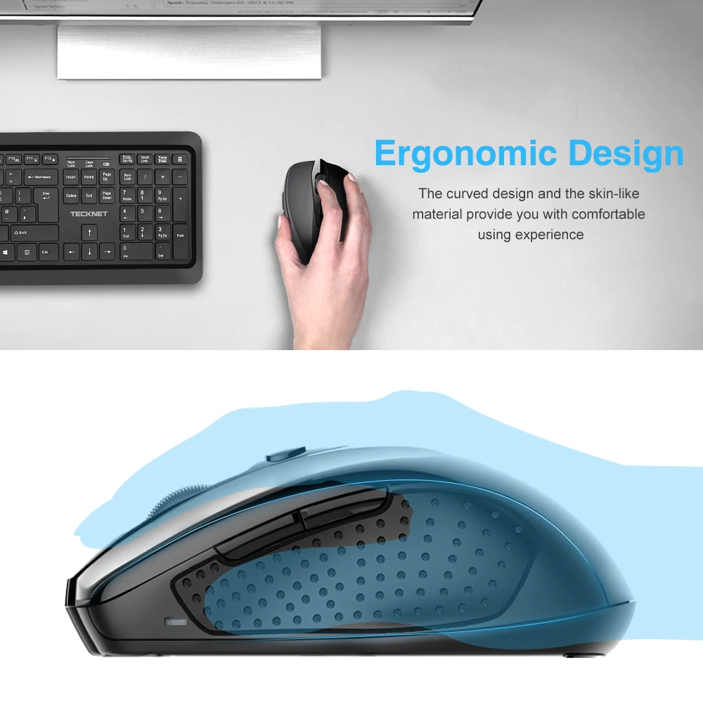TeckNet мышь Беспроводная USB 2600DPI Регулируемый USB приемник оптическая компьютерная мышь 2,4 ГГц эргономичная мышь для ноутбука ПК мышь