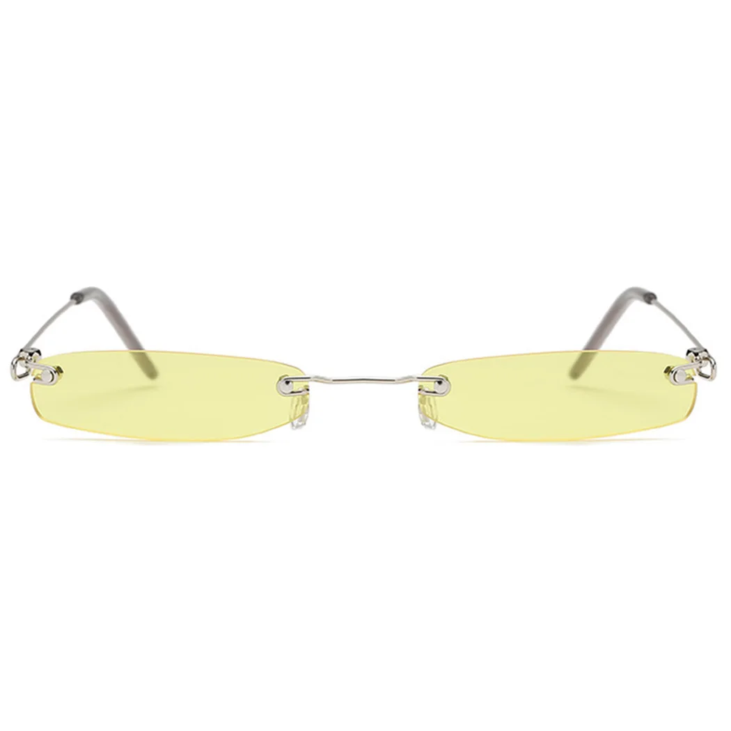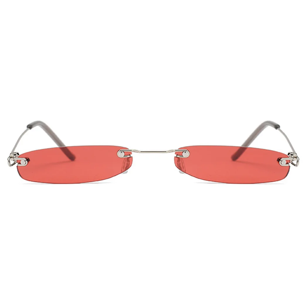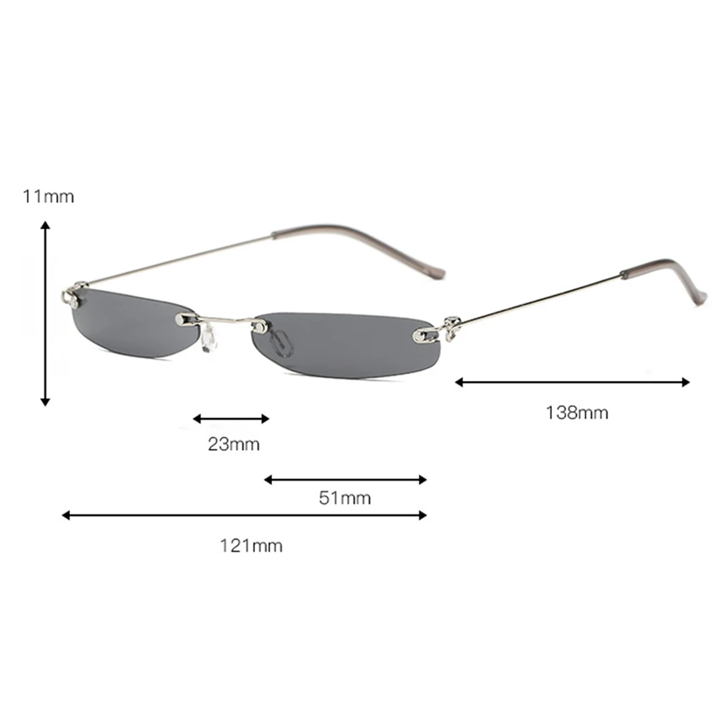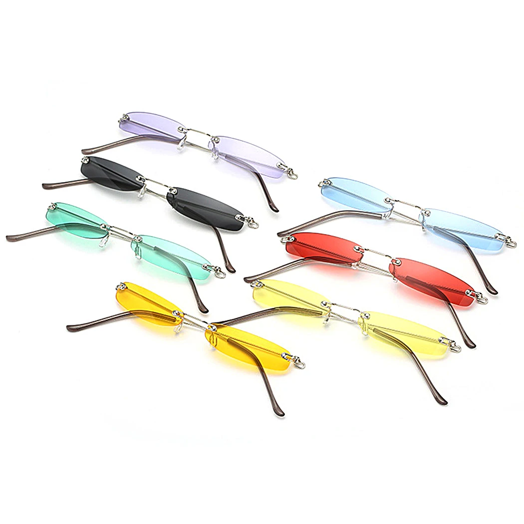 Солнцезащитные очки без оправы для мужчин и женщин, винтажные узкие прямоугольные солнечные очки с морскими линзами, в металлической оправе, с защитой от ультрафиолета