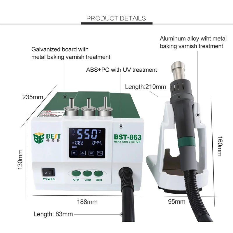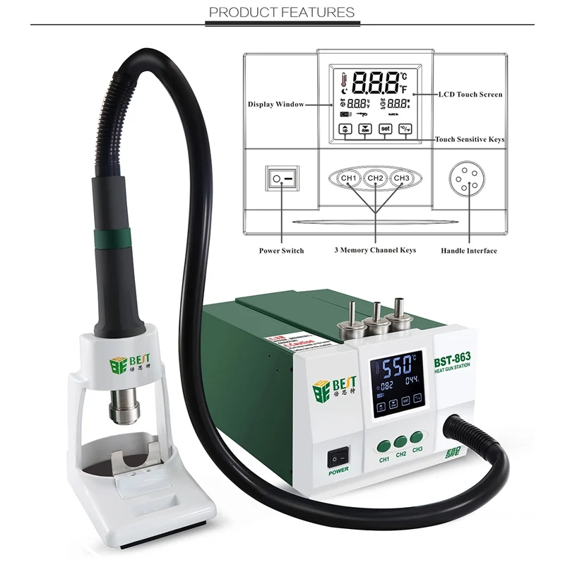 1200 Вт паяльная станция без свинца с горячим воздухом, цифровой сенсорный экран, воздушный тепловой пистолет, термостатическая SMD паяльная станция