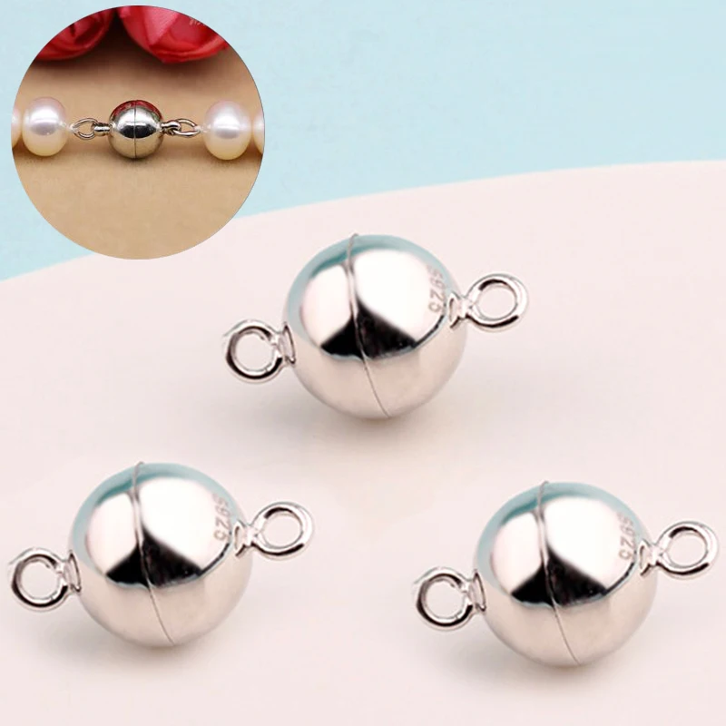 Магнитная застежка-конвертер из стерлингового серебра 100% пробы, 6 мм, 8 мм, браслет, ожерелье, аксессуары для изготовления ювелирных изделий
