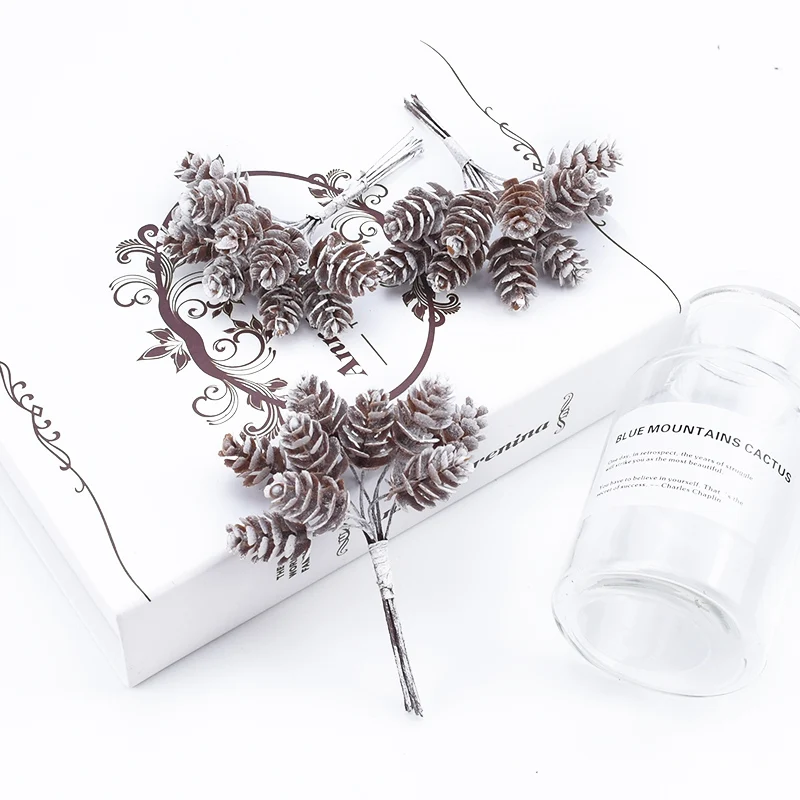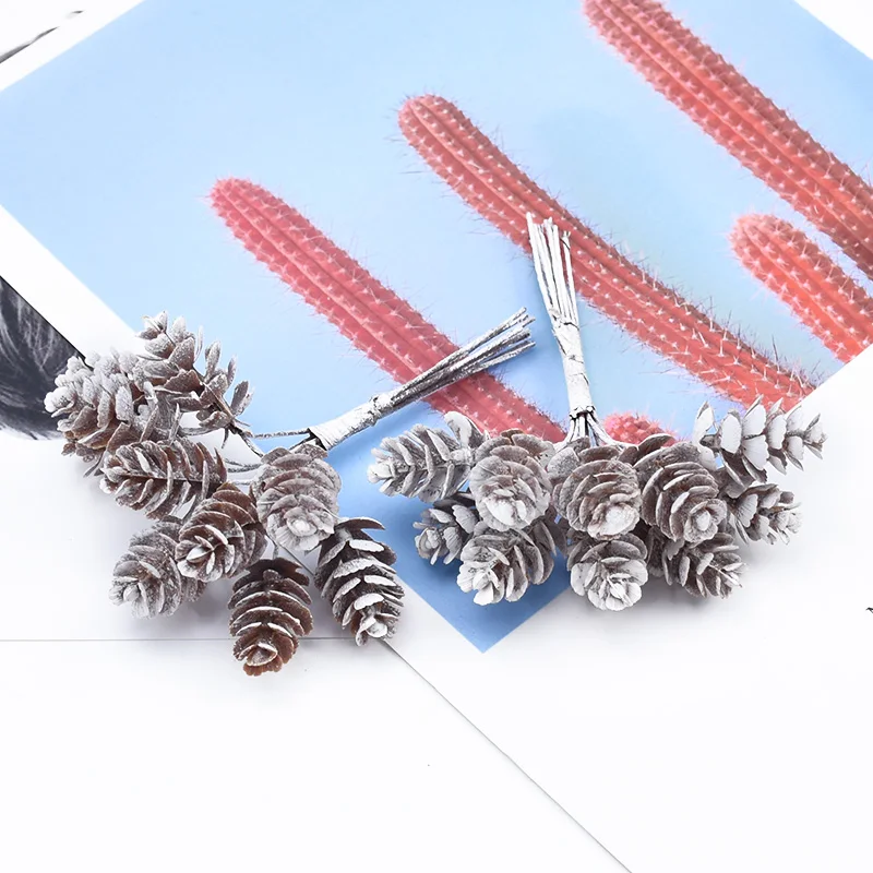 10 шт. рождественские сосновые цветы для скрапбукинга для дома, свадебное украшение сделай сам, Подарочная коробка для конфет, недорогие искусственные растения с помпоном