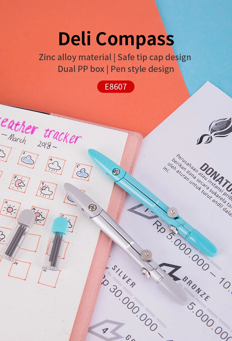 Металлический компас DELI, многофункциональный инструмент для чертежей из цинкового сплава, милая фотография
