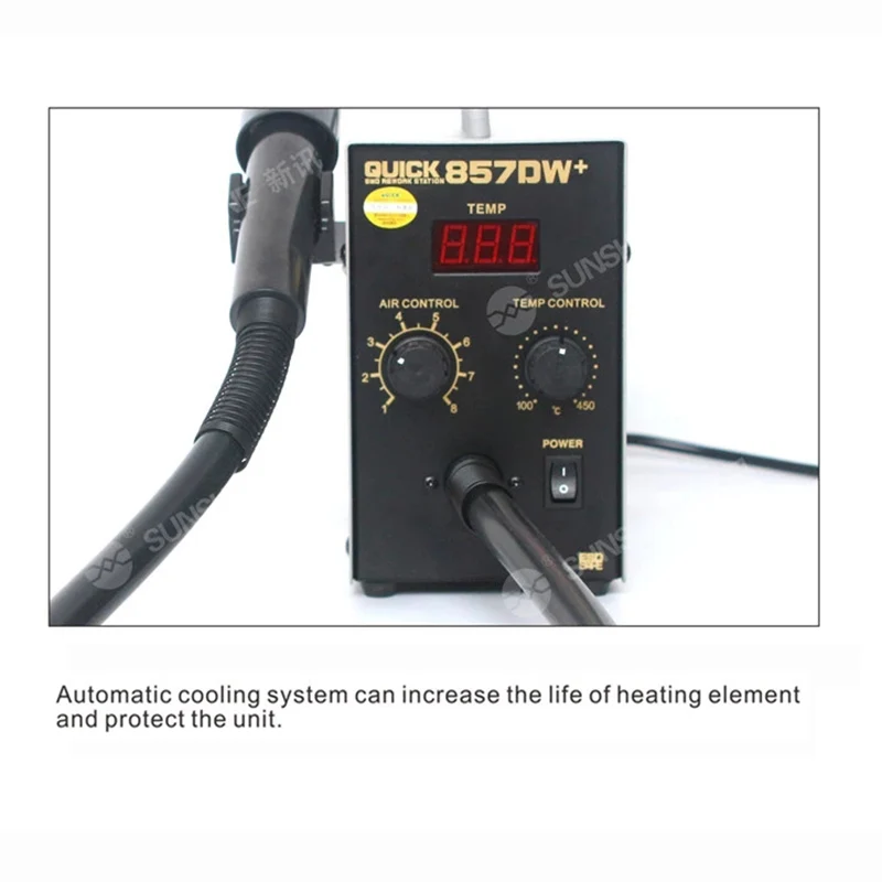 Паяльная станция QUICK 857DW + BGA с цифровым дисплеем, станция для распайки термофена для BGA SMD CHIP PLCC Repair 110V 220V