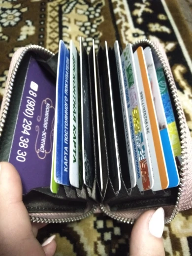 удобный мини-кошелёк. покупкой довольна. купила для маленькой сумочки, деньги,проездной ,карточки. очень удобно!