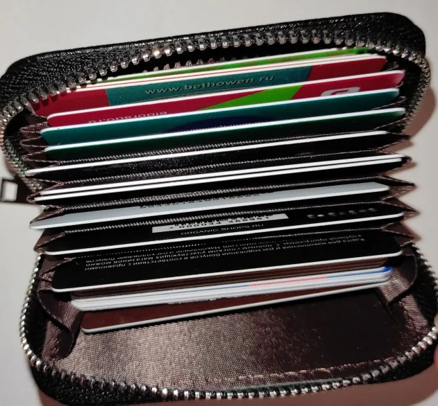 Замечательный чехол. Вмещает в себя до 25 карт. Есть отделения большие, куда можно положить до десяти карт, и отделения на каждую карту,которые также вмещают две-три карты. Мягкий кожзам черного цвета. Удобно держать в руке. Описанию соответствует, с продавцом не общалась, доставка месяц.