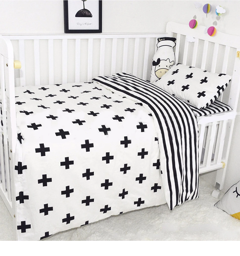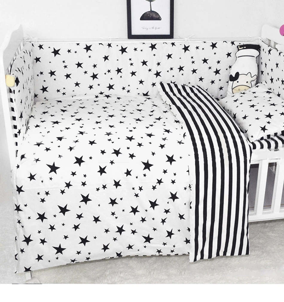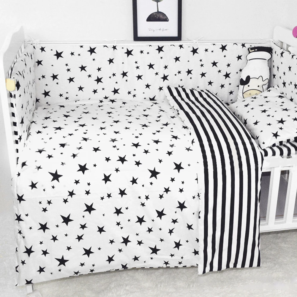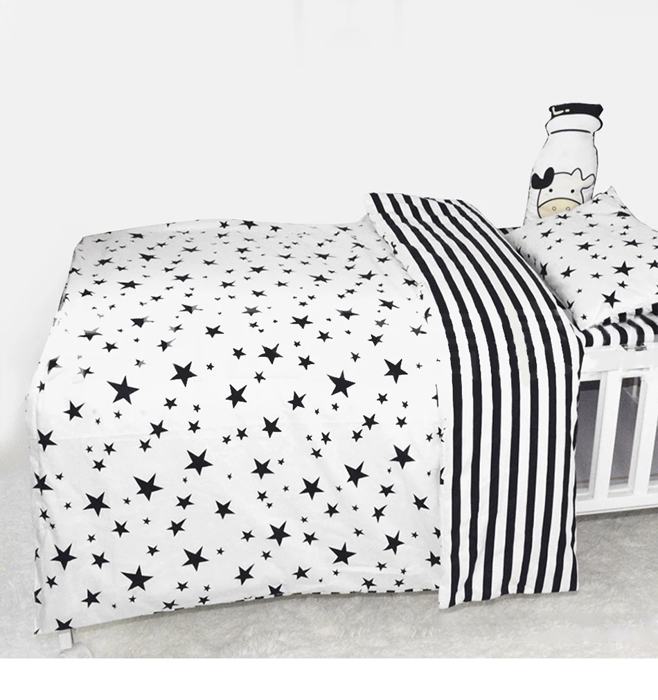 3 шт.компл., детские постельные принадлежности, черно-белая полосатая раскладушка, комплект детской кроватки, бампер для младенцев, хлопок, мягкий лист, наволочка, бампер для кроватки