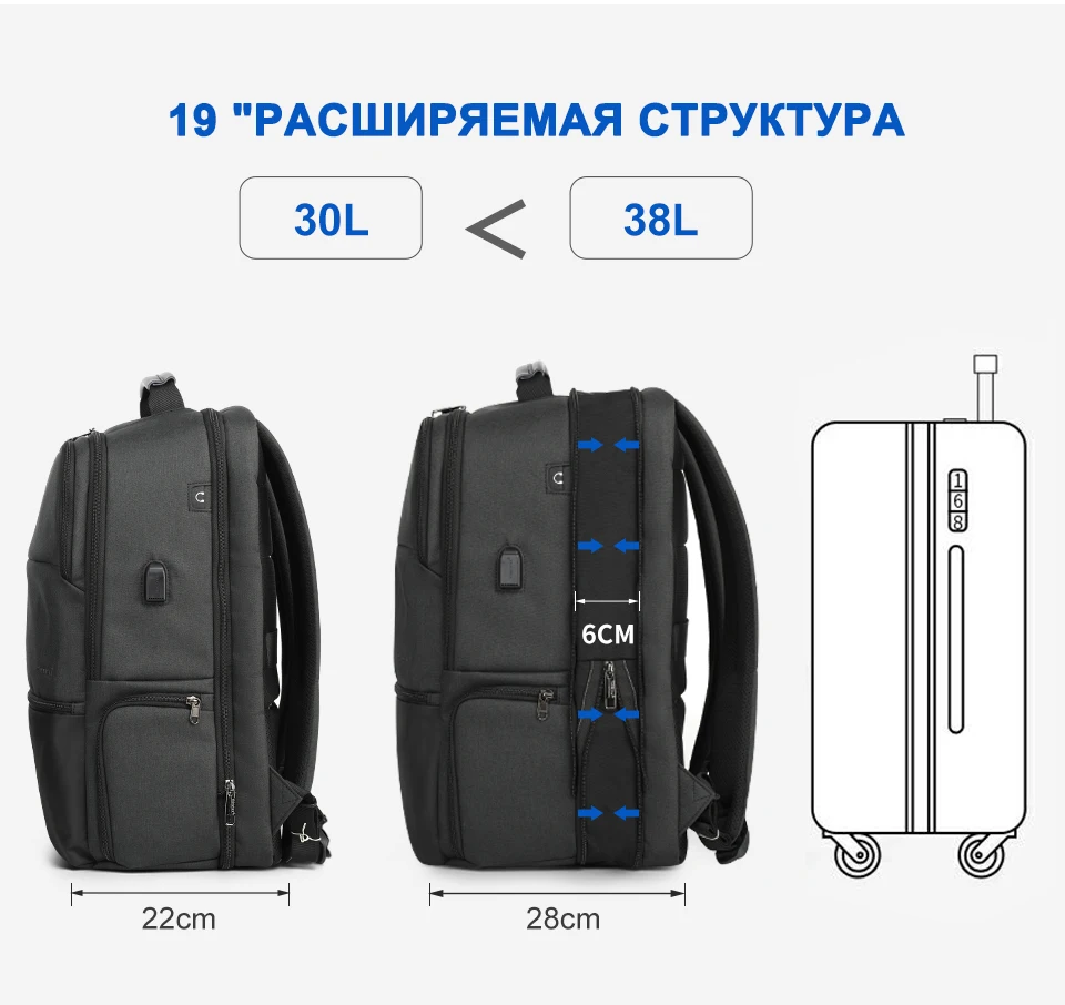 Tigernu новый мужсуой Рюкзак брызгозащитный Анти Вор Рюкзак USB Зарядка Многослойная Пространство Мужской Сумка RFID Подкладка Рюкзак Путешествия