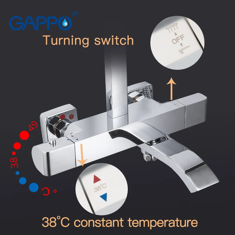 Смеситель для душа GAPPO, термостатический душевой набор, дождевая Душевая система горячей и холодной воды, G2407-40