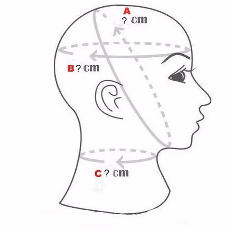 На заказ,Пожалуйста, сообщите мне размер вашей головы (A,B,C) см. НижеТаблица методов