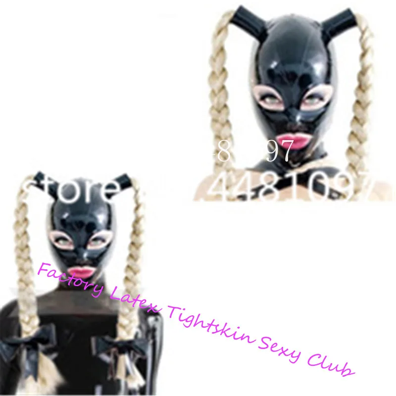 100% латексная маска, резиновый капюшон унисекс с косичками, резино...