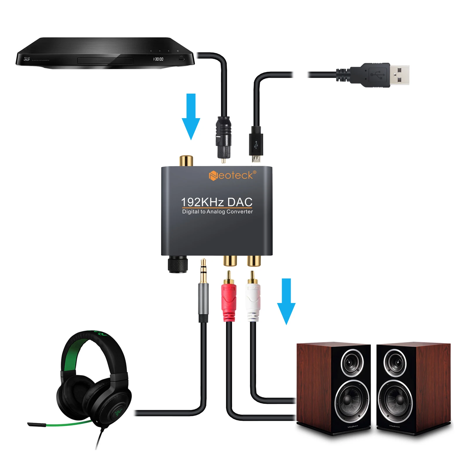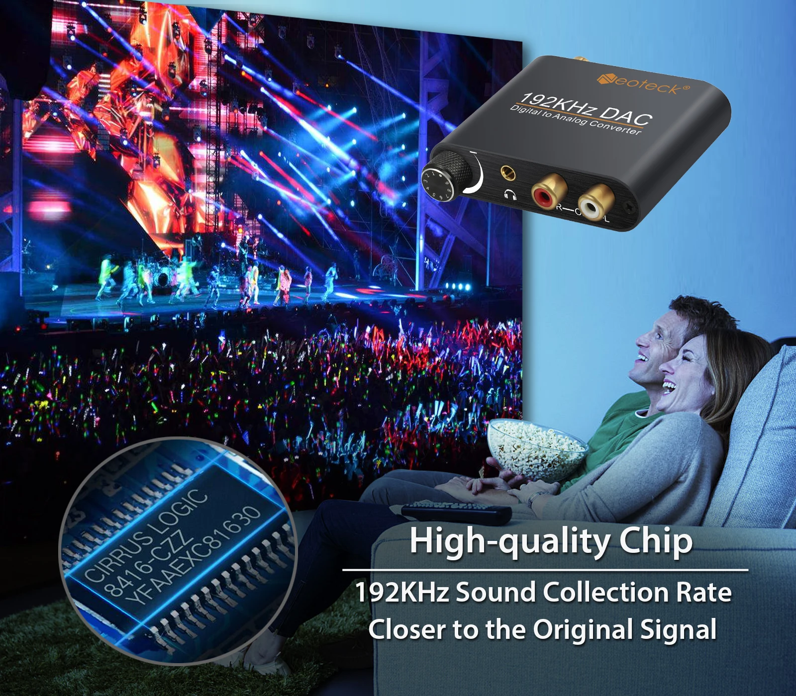Этот конвертер предназначен для профессиональной обработки аудиосигнала. Он может легко преобразовать коаксиальный или toslink-интерфейс в аналоговый аудиоинтерфейс RCA и 3,5 мм для наушников
