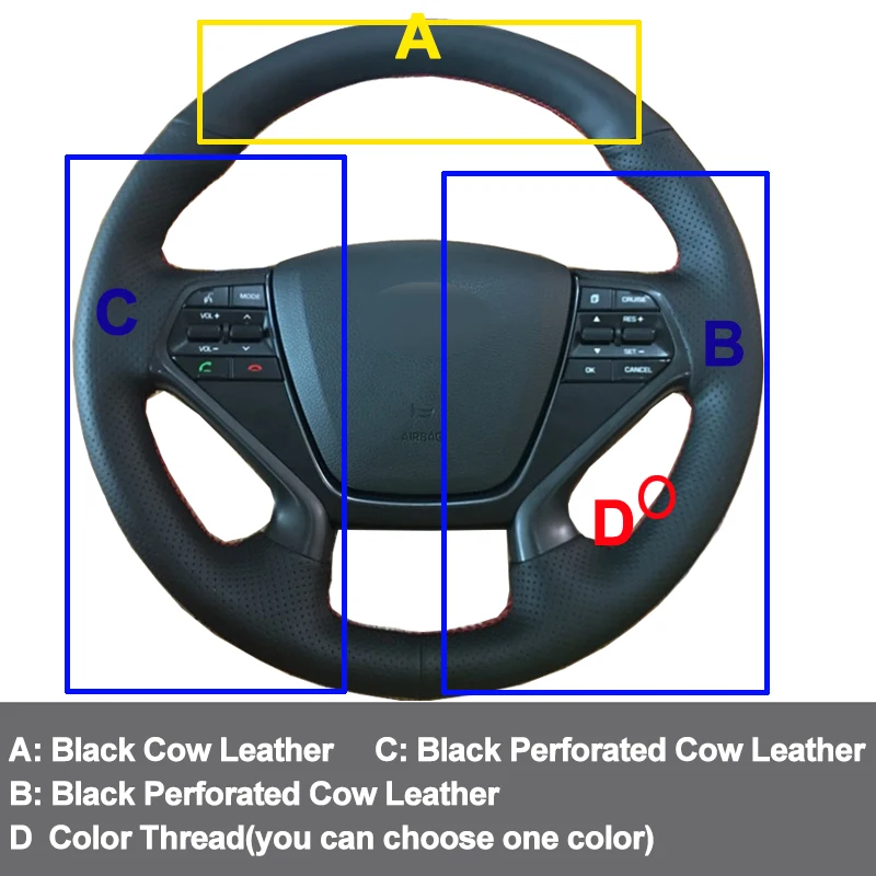 Оплетка на руль чехол рулевого колеса автомобиля коровья кожа для Hyundai Sonata 9 2015 2016 2017 (4-спицевая), Ручное шитье