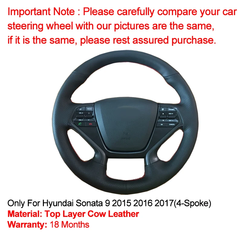 Верхний слой из коровьей кожи чехол на рульДляHyundai Sonata 9 2015 2016 2017 (4-спицевая).