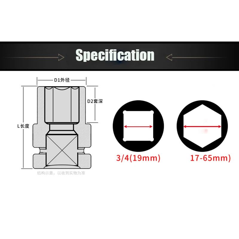 Набор ударных головок 1 шт., пневматическая головка 34 дюйма, для тяжелых условий эксплуатации 17-40 мм, инструменты для авторемонта