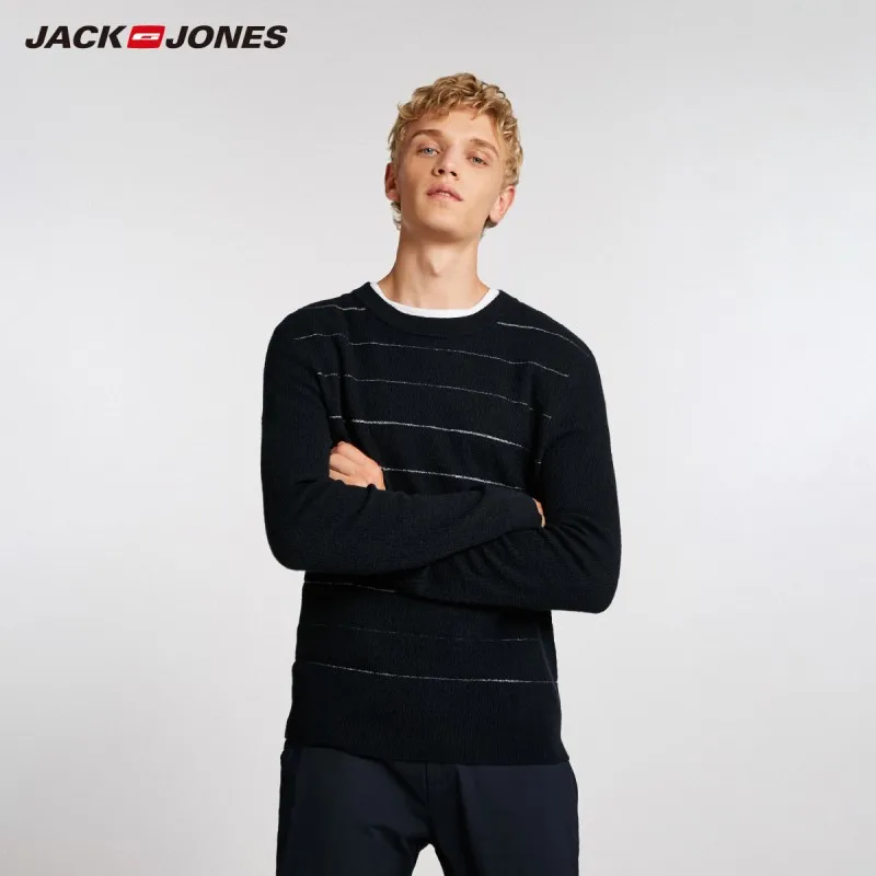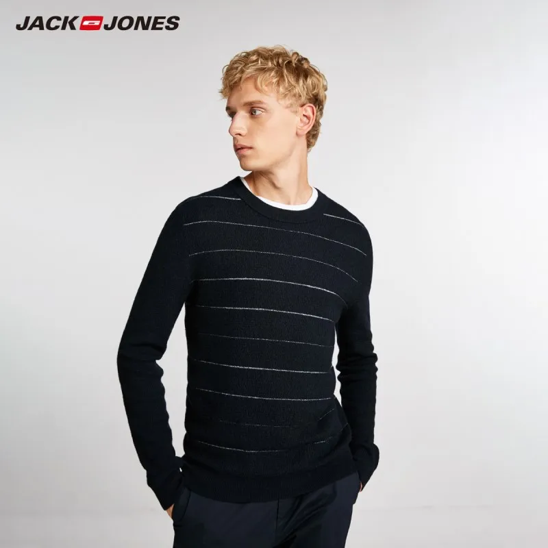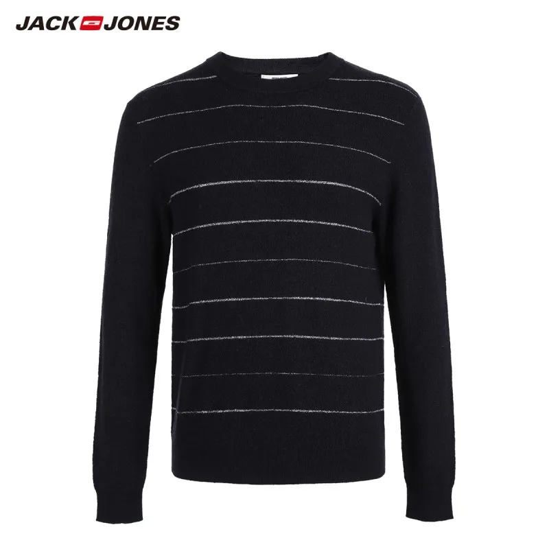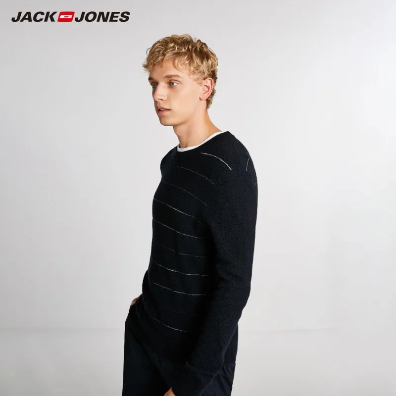 JackJones осенний мужской свитер из 100% шерсти контрастный полосатый свитер с круглым вырезом Повседневный свитер Топ 218324556