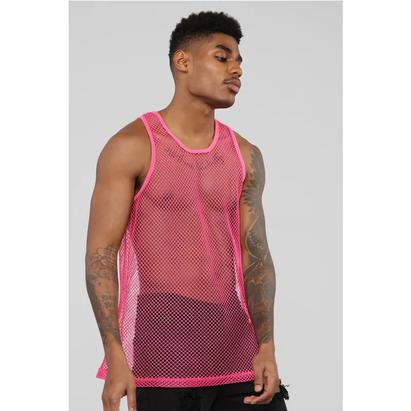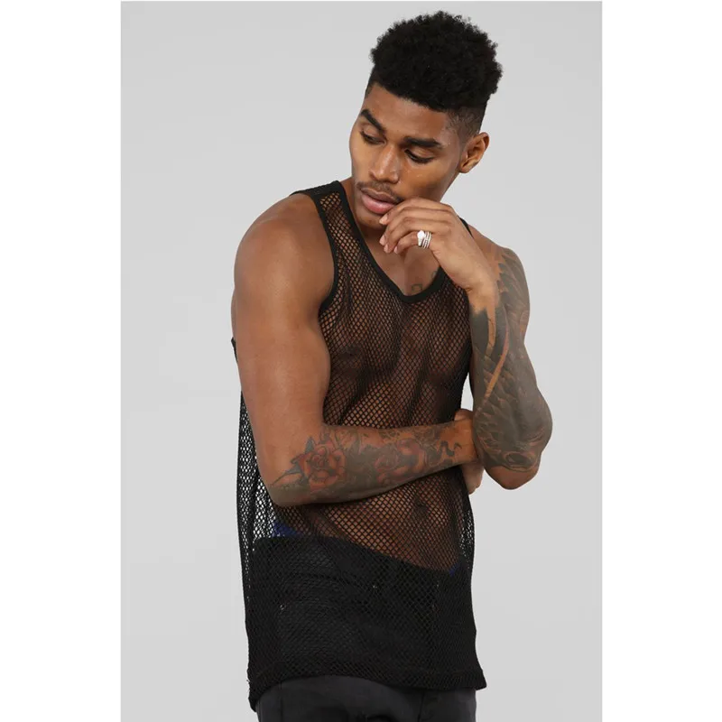 Сексуальная мужская безрукавка без рукавов с сеткой, безрукавка, верхняя одежда, Спортивная безрукавка для тренировки, жилет с открытыми плечами, спортивная одежда