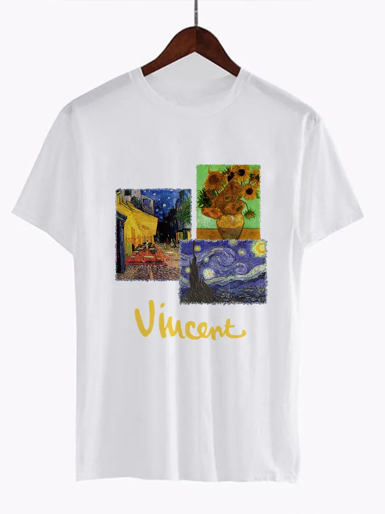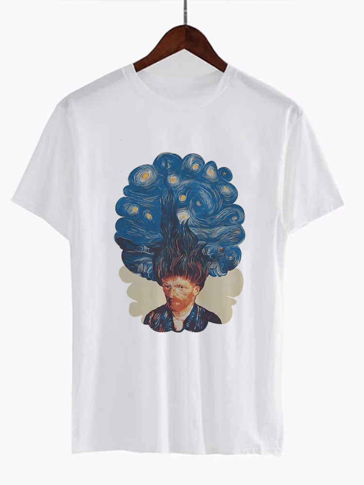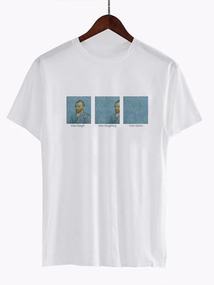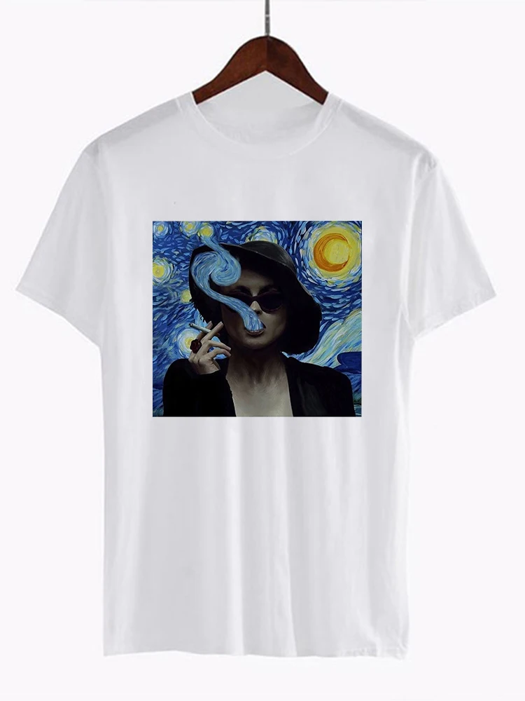 Ван Гог миндального масла футболка с картиной для женщин Tumblr мода гранж эстетику печатных футболка милые винтажные топы белого цвета