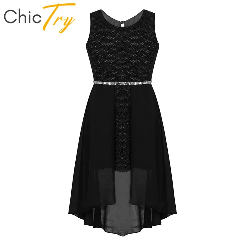 ChicTry Дети Подростки Элегантный без рукавов Блестящие Стразы шифон девушки день рождения Выпускной бальное платье социальные танцы костюм