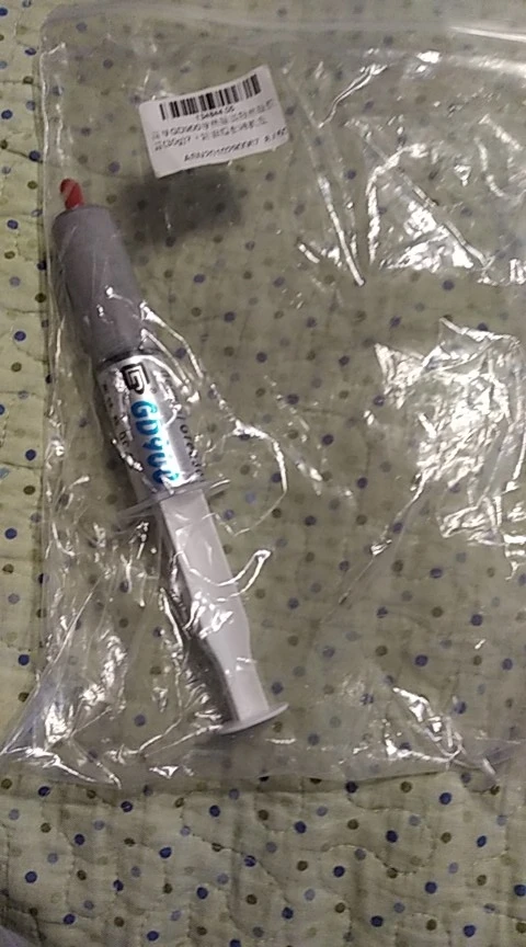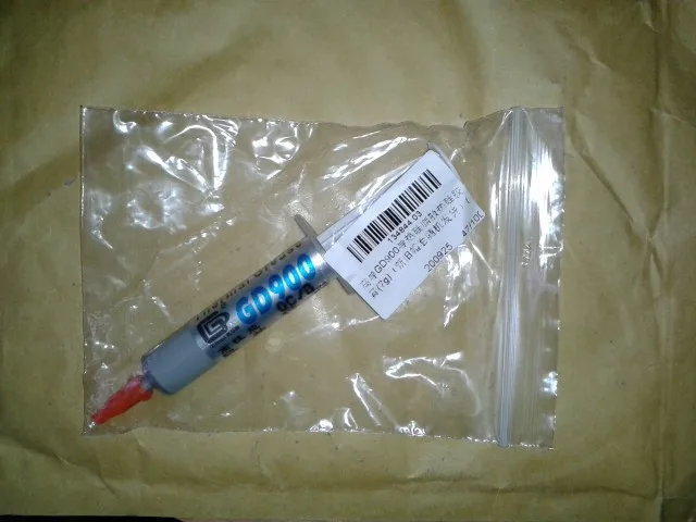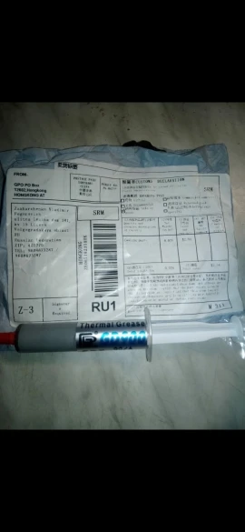 через 30+ дней в почтовом ящике, шло какой-то дешманской почтой SunYOU с Китая неотслежкой через Латвию и пришло совсем под другим треком от почты Латвии в обычной пупырке, дату производства и срок годности не нашел но вроде не оч старая - хз что было нанесено до этого но с этой мазью на видеокарте, температура упала на 3-4 градуса цены радуют