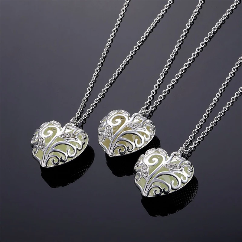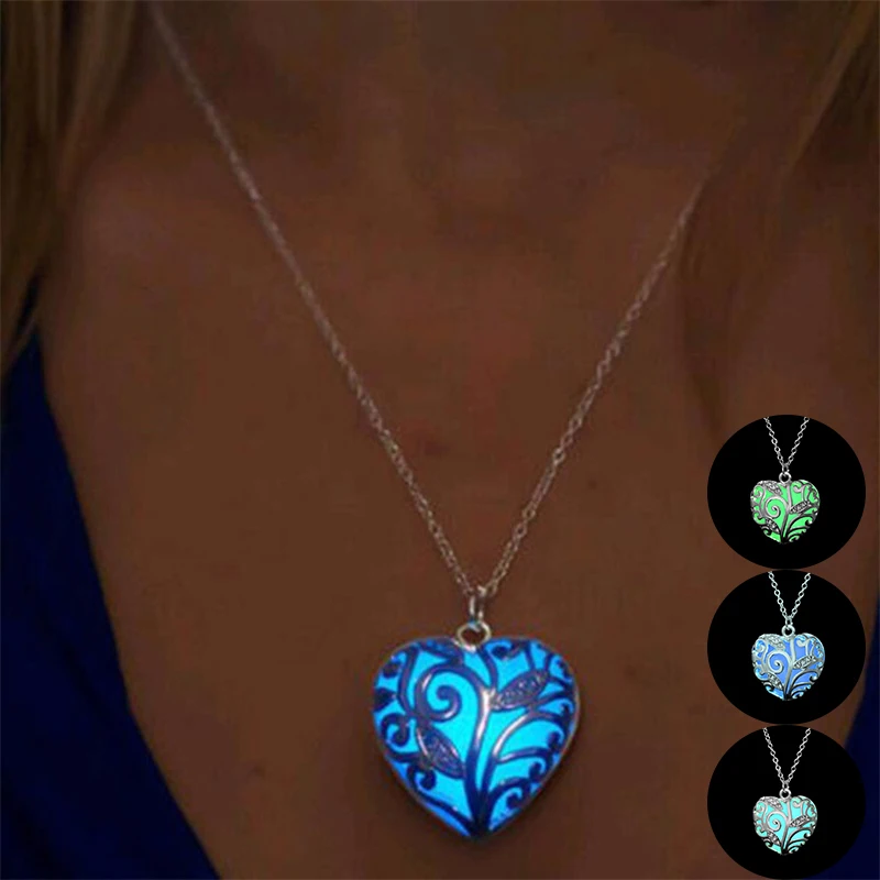 Кулон в форме сердца, светящееся в темноте ожерелье для женщин, светящееся ожерелье с кристаллами, ювелирные изделия, рождественские подарки