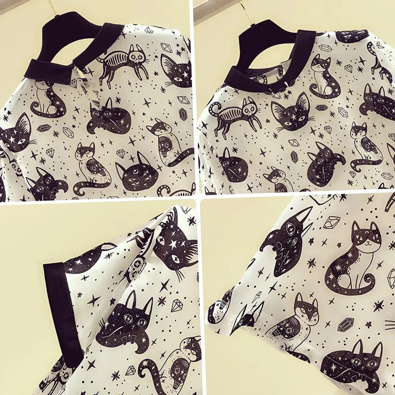 Блузка женская шифоновая с отложным воротником, с коротким рукавом