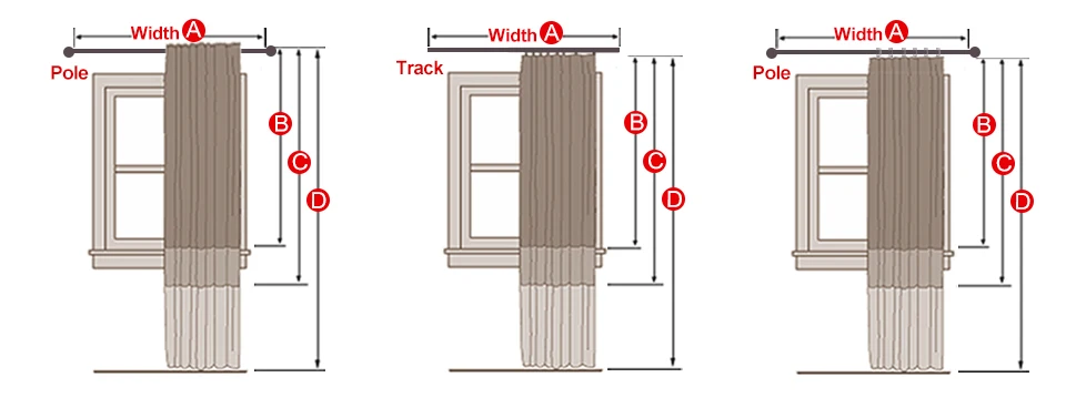 2. Длина штор =B/C/D(До высоты вашего окна).
