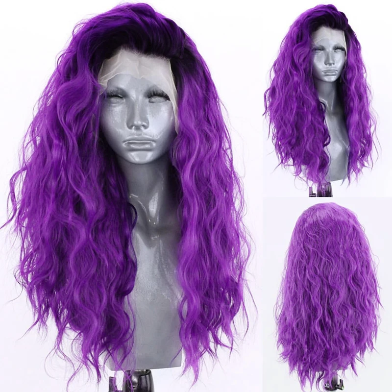 Парик Charisma Омбре фиолетовый длинный волнистый синтетический парик на фронтальной сетке термостойкие волосы без клея для косплея парики для женщин