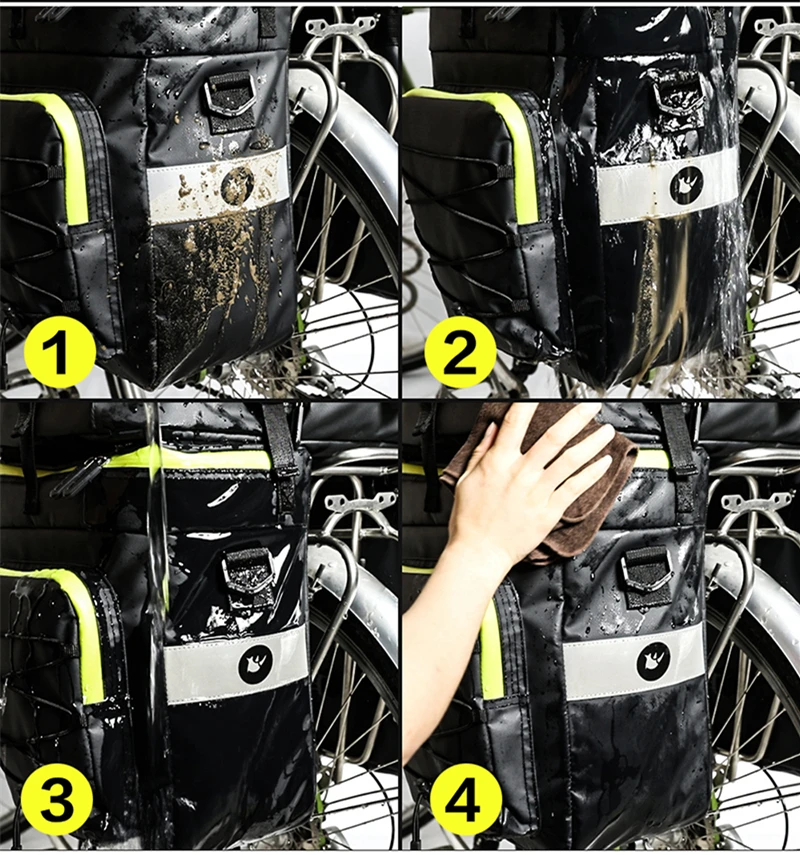 1. Вместимость: рюкзак 31л, с каждой стороны Паньер 22л 2. Характеристики: 1)3 в 1 большая емкость 75л полностью 2) два боковых панье может как сумка через плечо, один верхний рюкзак 3) водонепроницаемый с дождевиком, легко чистить 4) Светоотражающая полоса 3. Применение: горный велосипед, складной велосипед, дорожный велосипед для дальней поездки