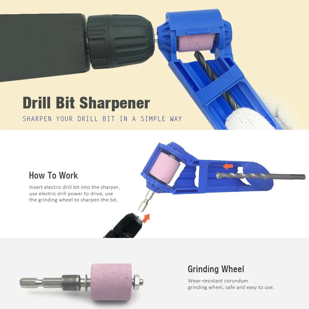 Особенности: -Применяется к Железному Долу. -Используйте электрическую дрель с патроном для привода этого инструмента. -Точить сверла и улучшить их рабочие характеристики. -Износостойкий корунд шлифовальный круг. -Хороший эффект заточки, экономя много усилий. -Легкий и компактный размер, легко носить с собой