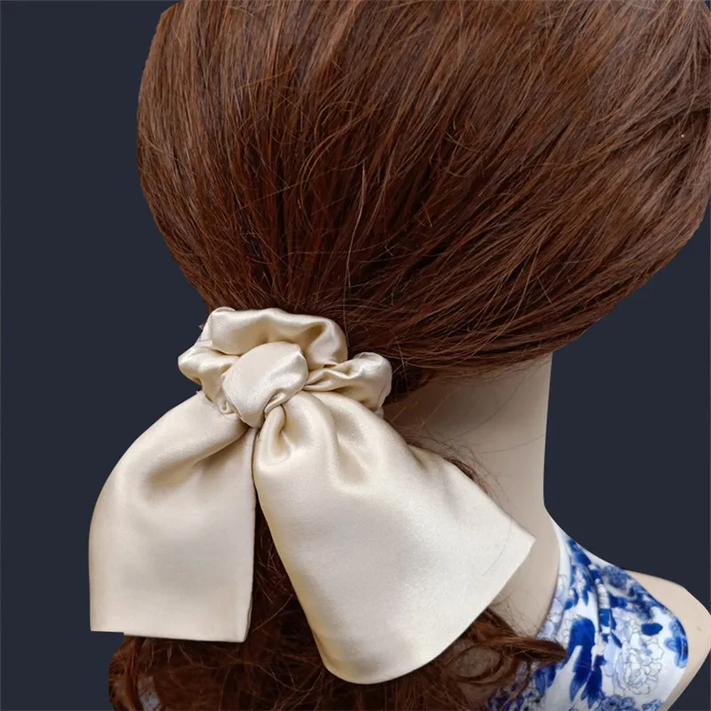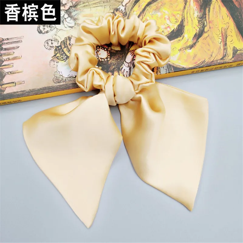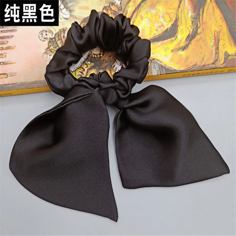 Бесплатная доставка, модная женская милая лента с бантом, однотонная резинка для волос из чистого шелка, милая резинка для волос OL, базовая резинка для волос, держатель для конского хвоста