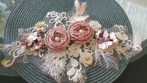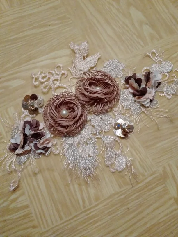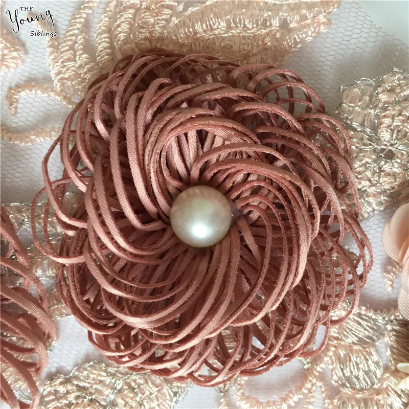Вышивка кружевной воротник 3D цветок аппликация свадебная одежда украсить бутоньерку патч шитье DIY ABS жемчуг аксессуар