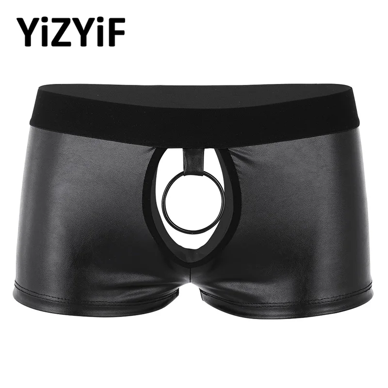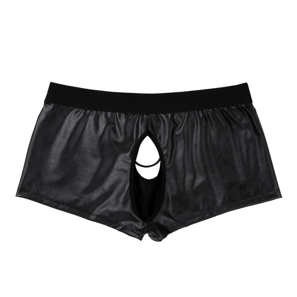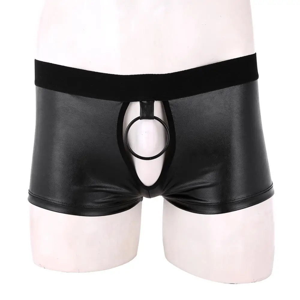 Мужское нижнее белье, сексуальные мужские купальники из мягкой искусственной кожи с вырезами и низкой посадкой, боксеры, нижнее белье, шорты для плавания, мужские плавки