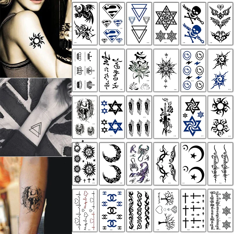 30 шт.лот набор временных татуировок Солнце Луна геометрический дизайн черепа руки шеи лица Татуировка тотем тату мужчин женщин детей крутой подарок